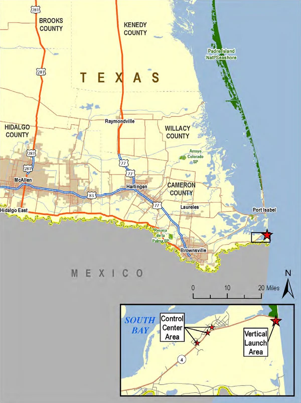 - Gov. Perry Announces State Incentives Bringing SpaceX Commercial Launch Facility, 300 Jobs to the Brownsville Area (англ.). Office of the Governor Rick Perry (4 августа 2014). Дата обращения: 5 августа 2014. Архивировано из оригинала 29 августа 2014 года.