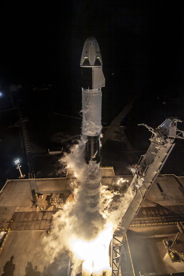 Запуск состоялся 2 марта 2019 года, в 07:49 UTC, cо стартового комплекса LC-39A в Космическом центре Кеннеди. Спустя 11 минут после старта ракеты-носителя корабль Crew Dragon отделился от второй ступени на заданной орбите. Носовой обтекатель был открыт и корабль продолжил своё 27-часовое путешествие к МКС[12][13].