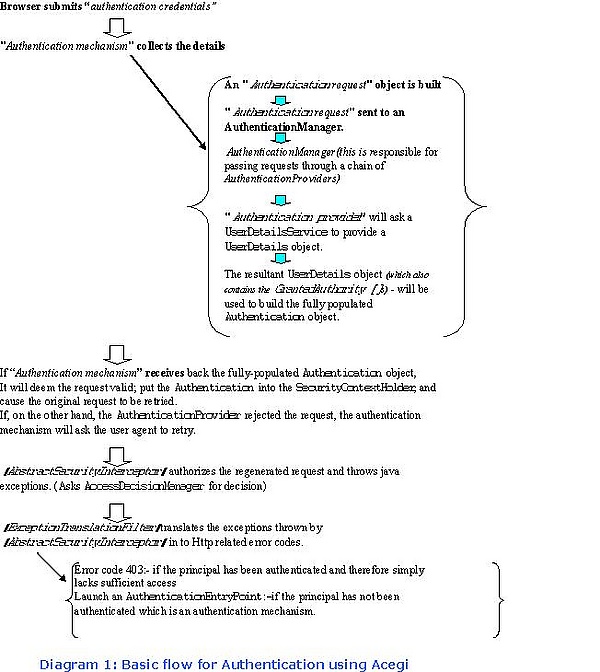 Если «механизм аутентификации» получает обратно заполненный объект Authentication, считается, что запрос валиден, Authentication помещается в SecurityContextHolder, после чего исходный запрос повторяется.Если же AuthenticationProvider отклонил запрос, механизм аутентификации предложит повторить ввод пользователю.