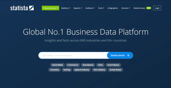 Statista — немецкая компания, специализирующаяся на рыночных и потребительских данных. По данным компании, её платформа содержит более 1.000.000 статистических данных по более чем 80.000 темам из более чем 22.500 источников и 170 различных отраслей промышленности и приносит доход в размере около 60 миллионов евро[1].