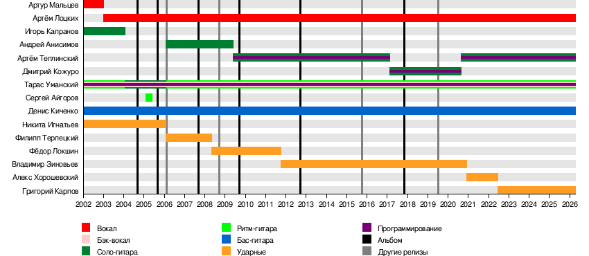 - Денис Киченко — бас-гитара (2001—настоящее время)