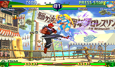 - A-ism (в японской версии Z-ism) — стандартный боевой режим, основанный на системе двух предыдущих игр и предлагающий игроку разделённую на три деления энергетическую шкалу, от степени заполненности которой зависит возможность проведения суперприёмов той или иной мощности; мощность суперприёма определяется нажатой при вводе атакующей кнопкой (например, у Кена для суперприёма сёрю-рэппа второго уровня при вводе нажимается кнопка средней атаки рукой). Некоторые суперприёмы могут требовать полностью заполненной энергетической шкалы, как сюн-гоку-сацу у Акумы либо сиппу-дзинрай-кяку у Кена.