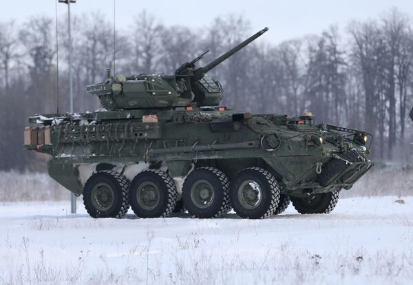 - M1296 Stryker Dragoon — боевая машина пехоты.