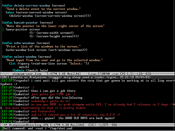 Stumpwm — фреймовый оконный менеджер для X11, написанный на Common Lisp.