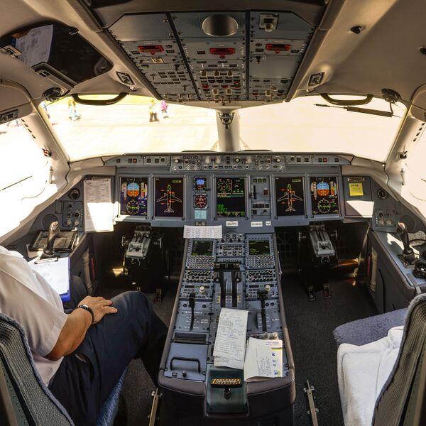 Самолёт обладает современной «стеклянной кабиной». Интерфейс включает в себя пять многофункциональных дисплеев[75].