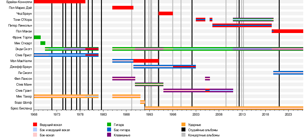 Фрэнк Торпи Мик Стюарт Брайан Коннолли Мик Такер Стив Прист Пол Марио Дэй Фил Лансон Мэл МакНалти Джефф Браун Стив Манн Бодо Шопф Чед Браун Стив Грант Тони О’Хора Питер Линкольн |