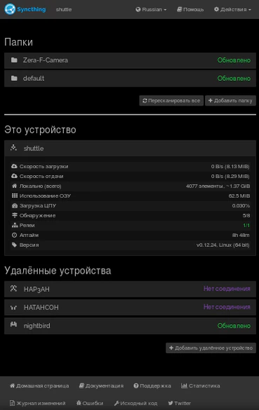 Syncthing всё ещё в разработке, тем не менее, большой объём функций уже реализован: