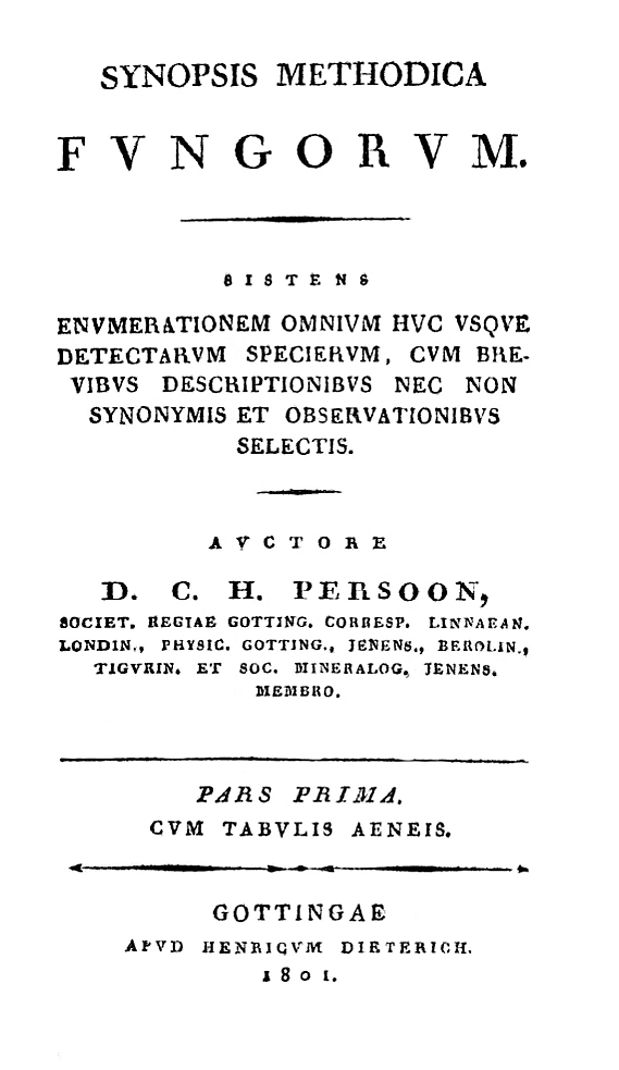 Полное название работы — Synopsis methodica fungorum. Sistens enumerationem omnium huc usque detectarum specierum, cum brevibus descriptionibus nec non synonymis et observationibus selectis.