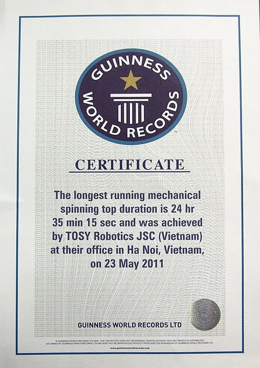 В 2011 году игрушка TOSY TOOP была внесена в Книгу рекордов Гиннесса как самый долго вращающийся в мире механический волчок. В 2012 году был представлен робот mRobo 1.0 на выставке CES (Consumer Electronics Show) в Лас-Вегасе, где его рекламировал певец Джастин Бибер[1].