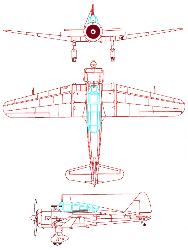 Вооружение. Стрелковое - два пулемёта калибра 7,7 мм, один пулемёт неподвижный устанавливался справа под капотом двигателя и обслуживался лётчиком, второй на подвижной установке в кабине стрелка-наблюдателя. Эффективная дальность стрельбы обоих пулемётов составляла 800 м. Бомбовое вооружение - десять бомб, массой 15 кг каждая, подвешивались по пять под каждое крыло[2]. При атаках лётчиков-камикадзе устанавливалась 250-кг бомба под фюзеляжем.