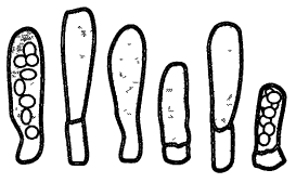 Аски восьмиспоровые, размерами 20—33(48)×8—13(18) мкм, цилиндрические или булавовидные с округлой или скошенной верхушкой. Базальные клетки шире асков, короткие, размерами 7—15×7—33 мкм, иногда отсутствуют.