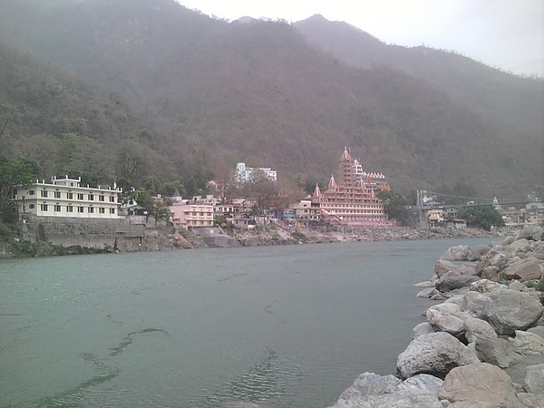 «Ришикеш — изумительное место, там Ганг течёт со склонов Гималаев на равнину между горами и Дели. С Гималайских гор вниз несётся бурный поток, через который нам пришлось перебираться по длинному подвесному мосту. Ашрам располагался на холме, откуда открывался вид на городок и реку. [...] Весь участок занимал восемь или десять акров»[51].