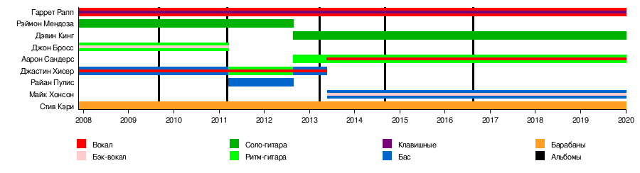 - Джон Бросс — ритм-гитара, бэк-вокал (2007–2011)