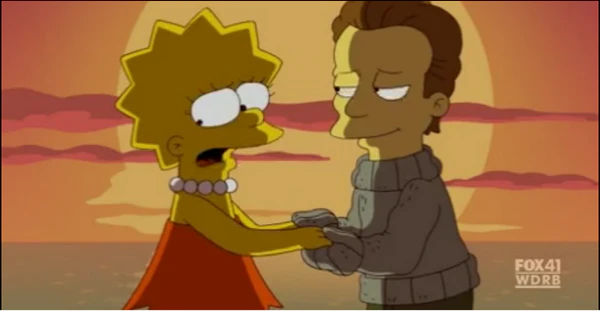 За ужином Мардж обнаруживает, что у нее мало общего с Лизой, и отвлекается на фуршет. Во время этого Лиза замечает красивого мальчика по имени Ник через трещину в стене между их столиками. Эти двое испытывают влечение друг к другу и начинают встречаться.