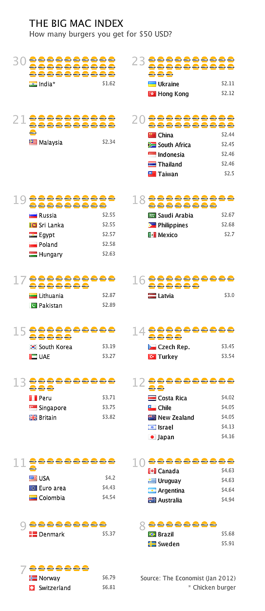 Существует раздел экономической статистики. Таблицы, такие как статистика занятости публикуются каждую неделю. Раздел является уникальным среди британских еженедельников, его рейтинги международной статистики имеют большое значение[35]. Кроме того, The Economist известен своим индексом Биг Мака, который был впервые опубликован в 1986 году. Он использует цену гамбургера в разных странах для измерения покупательной способности валют[36].