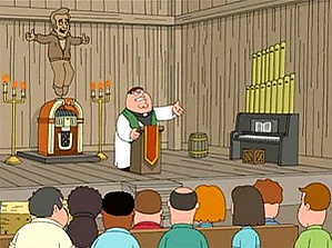 Не в силах найти подходящую себе религию, Питер решает создать собственную, основанную на сериале «Счастливые дни» и тамошнем персонаже Фонзи, и называет свою церковь «Первая Объединённая Церковь Фонца» («First United Church of the Fonz»).