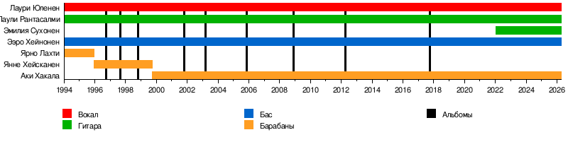 - Ээро Хейнонен — бас-гитара, бэк-вокал (1994 — настоящее время)