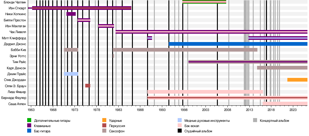 В августе 1962 года Дик Тейлор покинул группу и был заменён Биллом Уайменом из The Cliftons, а на место Айвори (позже присоединившегося к The Kinks) был приглашён Тони Чепмен, вскоре уступивший место Чарли Уоттсу, который в то время работал в рекламном агентстве[10].