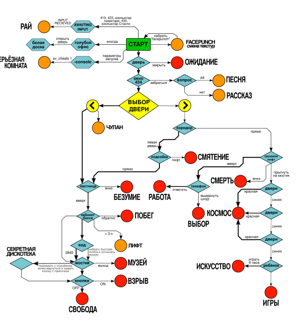 На определённом этапе разработки в некотором месте в игре можно было найти блок-схему, описывающую возможные варианты развития событий, но тестирования показали, что это убивало интерес у игроков, и от такого решения пришлось отказаться; тем не менее, чтобы игроки не пропустили сюжетные развилки, были внесены изменения в дизайн мест, где возможно принятие решения, некоторые из них были отмечены отдельным цветом[18]. В оригинальной модификации при неком стечении обстоятельств игрок попадал в окружение, созданное из элементов Half-Life 2. В ремейке вместо этого появились первый уровень Portal и сцена из Minecraft. Пью и Риден добились разрешения на их включение у Valve Corporation и Маркуса Перссона соответственно[18].