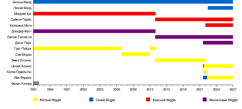 The Wiggles — австралийская детская музыкальная группа, сформированная в Сиднее (Новый Южный Уэльс) в 1991 году. По состоянию на 2022 год участниками группы являются Энтони Филд, Лаклан Гиллеспи, Саймон Прайс, Цехай Хокинс, Иви Феррис, Джон Пирс, Катерина Мете и Люсия Филд.