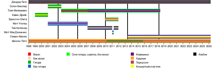 - Джаред Лето — вокал, гитара, клавишные, студийная бас-гитара (1998—настоящее время)
