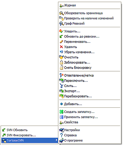 TortoiseSVN — это бесплатный клиент для системы контроля версий Subversion, выполненный как расширение оболочки Windows и распространяемый под лицензией GPL.
