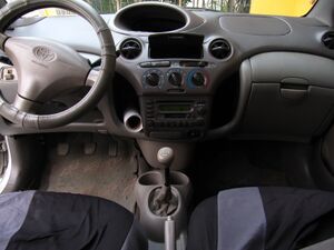 13 января 1999 года трёх и пятидверные переднеприводные хэтчбеки Vitz (яп. ヴィッツ) поступили в продажу в Японии[37]. Симпатичная машинка длиной всего 3,6 метра с мягкими обтекаемыми формами имела неплохую аэродинамику с коэффициентом сопротивления 0,3. Относительно большая колёсная база и высота автомобиля позволяли разместить в салоне четырёх взрослых ростом 190 см[38] или пятерых среднего роста. Интересной особенностью модели были расположенные по центру передней панели приборы. Считалось, что размещение приборов дальше от водителя позволит уменьшить время перефокусировки взгляда при переносе его с дороги на указатели[39]. Другим оригинальным новшеством было перемещаемое заднее сиденье. При необходимости его можно было сместить вперёд на 150 миллиметров, увеличив с 205 до 305 литров объём багажника[38]. При сложенных задних сиденьях объём пространства для багажа возрастал до 950 литров[18].