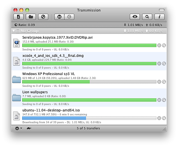 Transmission — простой BitTorrent-клиент c открытым исходным кодом.