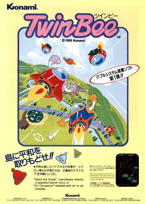 - ↑ Japanese promotional brochure for TwinBee. The Archive Flyers Archive. Дата обращения: 26 ноября 2019. Архивировано 25 марта 2019 года.