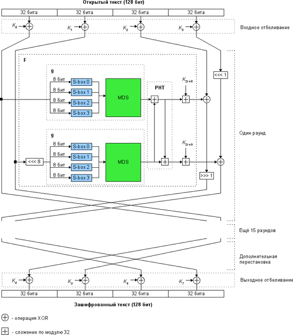 В Twofish это преобразование используется при смешивании результатов двух g-функций (n = 32).