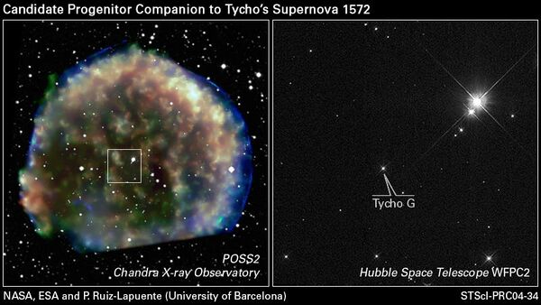 Сверхновую SN 1572 часто называют сверхновой Тихо, по имени астронома Тихо Браге, наблюдавшего "новую звезду" в 1572 году. Индекс "G" возник в исследовании 2004 года, в котором перечислялись кандидаты в компаньоны предшественника сверхновой, обозначенные индексами от A до V[4].