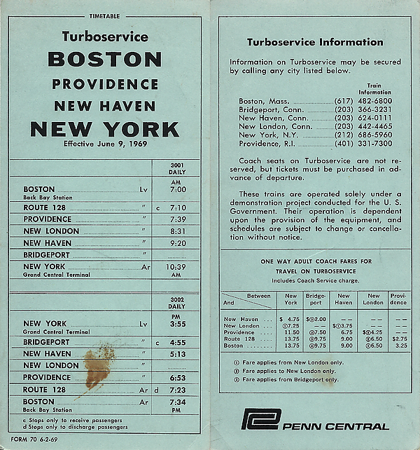 - ↑ "Turbotrain Due in State Today", Bridgeport (CT) Post, August 3, 1967, p2