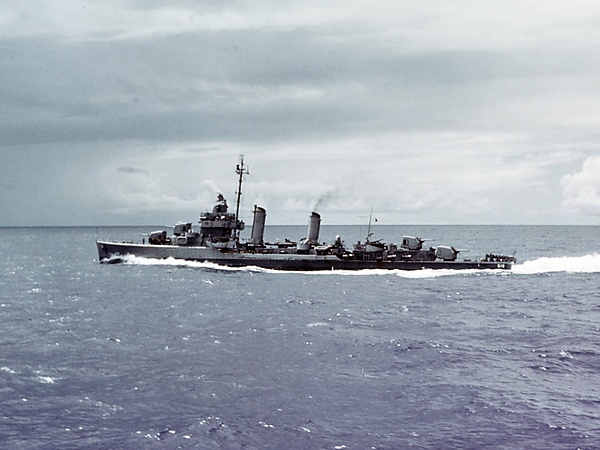Эсминец был заложен 26 февраля 1942 года на верфи Federal Shipbuilding and Drydock Company, в городе Кирни, спущен на воду 19 июня 1942 года и крещён супругой Эдвардса. Вступил в строй 18 сентября 1942 года, капитаном назначен лейтенант-коммандер Уильям Лерой Мессмер. Участник сражений Тихоокеанского театра военных действий Второй мировой войны.