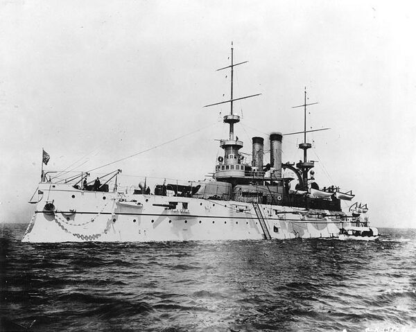 Киль корабля «Висконсин (BB-9)» был заложен 9 февраля 1897 в Сан-Франциско, Калифорния. На верфи Union Iron Works. Корабль был спущен на воду 26 ноября 1898. Бутылку о борт корабля разбила мисс Элизабет Стивенсон, дочь сенатора от штата Висконсин Айзека Стивенсона Маринетта. 4 февраля 1901 года броненосец был введен в состав флота США, капитаном был назначен Джордж Кук Рейтер.