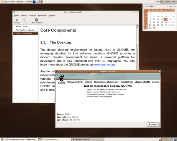 Ubuntu (до версии 11.04) была основана на среде рабочего стола GNOME, которая разработана, чтобы обеспечить свободный, простой и интуитивный интерфейс, предлагая полный диапазон современных настольных приложений[59]. Помимо тех приложений, которые включены в GNOME, Ubuntu выходит с дополнительным программным обеспечением, включая LibreOffice (OpenOffice.org до версии 11.04[60]), веб-браузер Mozilla Firefox[61][62].