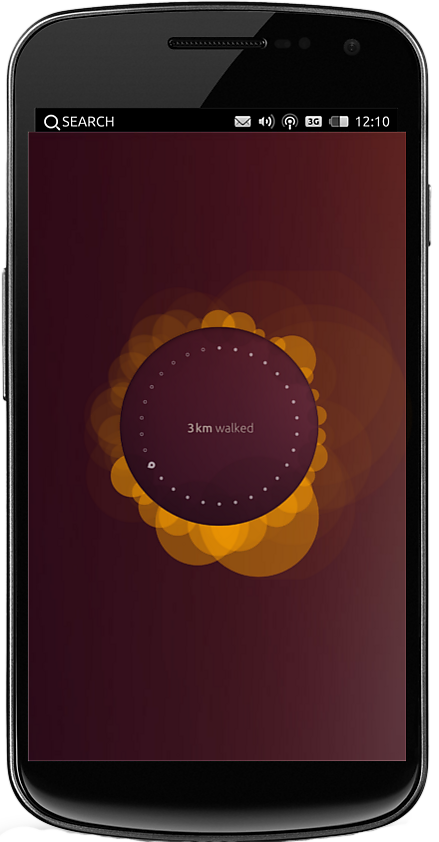На включённом Ubuntu Phone привычный экран блокировки отсутствует (разработчики объяснили это отсутствием необходимости), хотя разблокировка SIM-карты, вероятно, должна быть на своем месте. Вместо этого есть функциональный «экран приветствия». Окружение меняется в процессе использования, что довольно интересно. Оно отображает статус пользователя и последние события на экране приветствия в комплекте с анимированным стилизованным кругом.