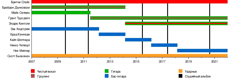 - Бритни Хейс (она же Бритни Слэйс) — чистый вокал (2007—настоящее время)