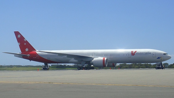 Для выполнения регулярных рейсов по международным маршрутам V Australia разместила заказ в компании Boeing на приобретение шести дальнемагистральных лайнеров Boeing 777-300ER[10]. В ожидании поставки самолётов авиакомпания взяла в лизинг у Международной финансовой корпорации (ILFC) один Boeing 777-300ER, который был доставлен перевозчику в Сиэтл 26 января 2009 года. Самолёт перегонялся в Сидней через Лос-Анджелес, в пункте прибытия 9 февраля 2009 года его ожидала праздничная церемония с участием главы корпорации Virgin сэра Ричарда Брэнсона, актёров Холли Валанс и Джулиана Макмэхона[11]. В 2010 году заказ на два из шести самолётов был реорганизован в поставку по схеме опциона со сроком исполнения в 2012 году[12].