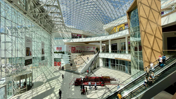 Здание имеет остеклённую изогнутую крышу, фасад выполнен волнистым, в форме веера. Конструкция крыши способствует проникновению солнечного света и не задерживает осадки, оставаясь чистой даже в зимнее время года. Общая торговая площадь составляет 167 тыс. м²[4][1].