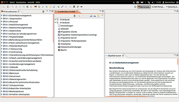 Verinice поддерживает операционные системы Windows, Linux и macOS, а также использует лицензированные каталоги IT-Baseline (IT-Grundschutz) от Федерального ведомства по безопасности информационных технологий (BSI).[5]
