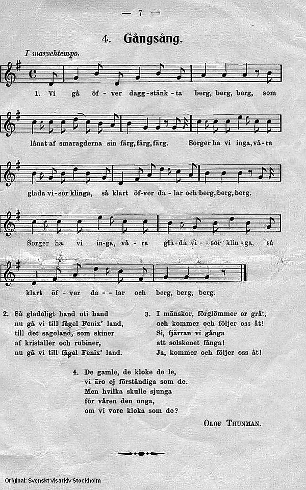 //: och sorger ha vi inga, våra glada visor klinga,