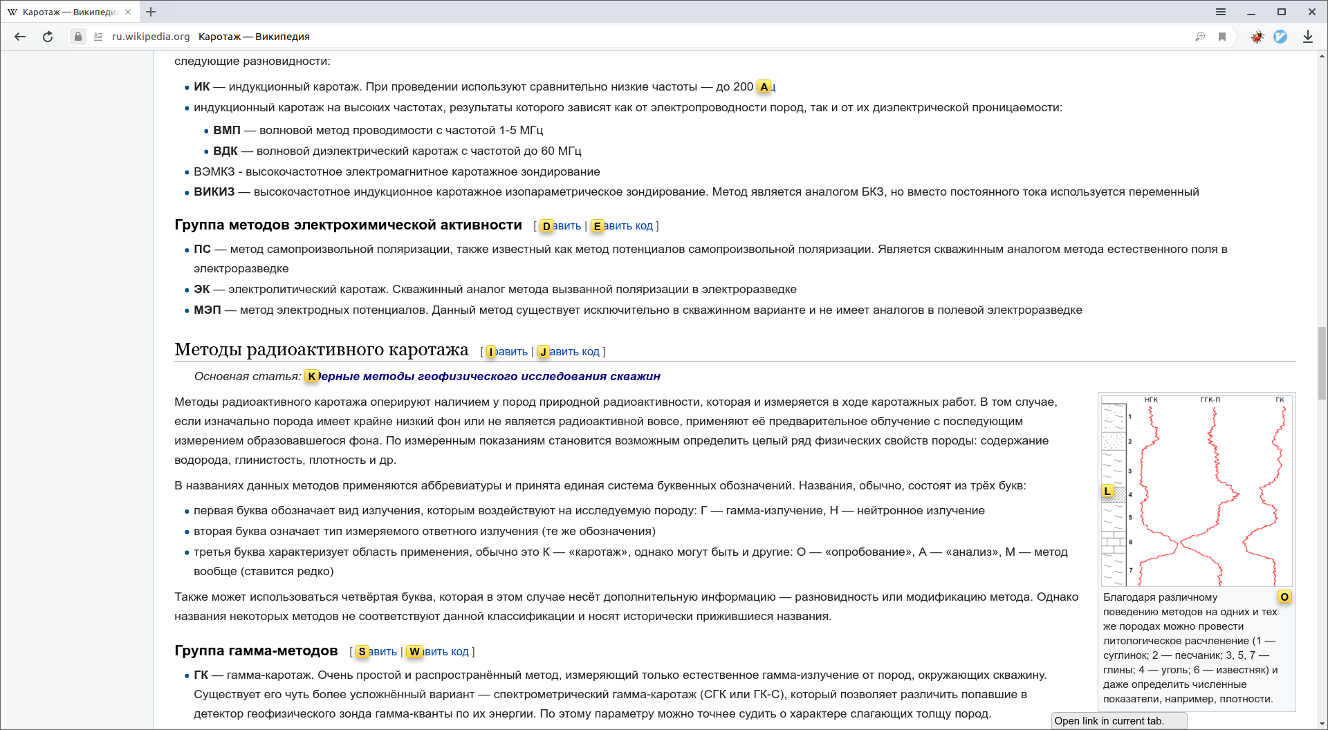| u | прокрутка страницы на половину экрана вверх (больше, чем при нажатии k) |