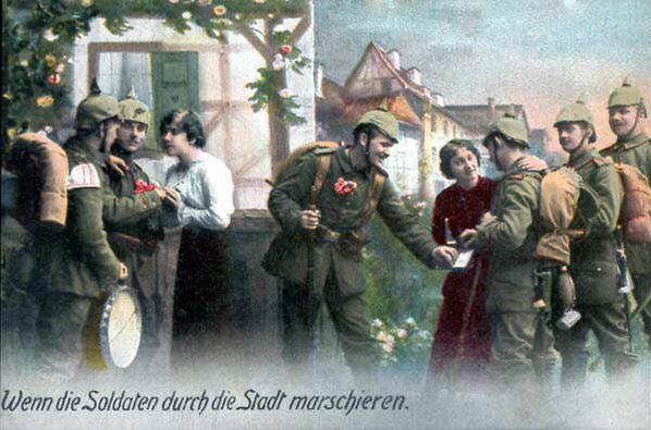Сохранилась германская открытка, отправленная с фронта в 1916 году. Открытка так и называется: «Wenn die Soldaten durch die Stadt marschieren». На обороте был напечатан текст песни, с припиской солдата о том, что на фронте ему встречается не слишком-то много девушек…
