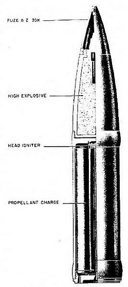Относительно толстостенная боеголовка изготавливалась методом горячей штамповки. После обработки и заполнения тринитротолуолом и аматолом в процентном отношении 50/50, её корпус ввинчивался на резьбу в передней части камеры сгорания. К передней части боеголовки привинчивался футляр с капсюлем-воспламенителем. Требуемая баллистическая форма обеспечивалась штампованным стальным наконечником, надевавшимся на переднюю часть боеголовки.