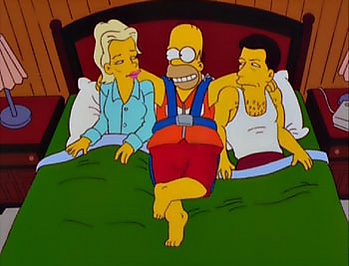 | Сцена на диване | Мардж выносит в гостиную корзину с бельём. Оттуда она вытаскивает сжатых Гомера, Барта, Лизу и Мэгги и вешает их на веревку для сушки белья, гордо наблюдая за своей работой. |