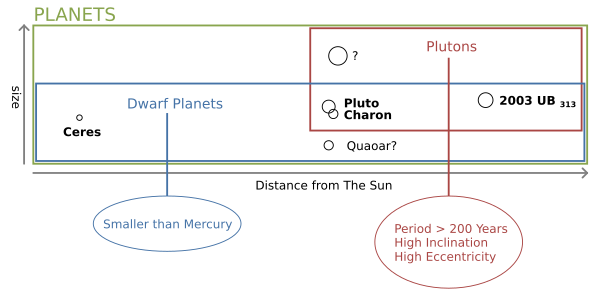 Плутон — это карликовая планета, согласно вышеуказанной классификации, и он является прототипом для новой категории транснептуновых объектов.[1]