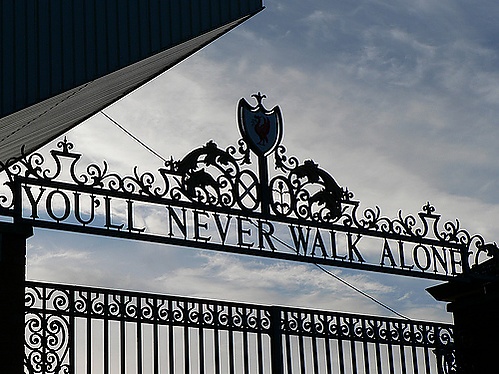 Вскоре песня стала гимном болельщиков «Ливерпуля», который исполняется на стадионе за несколько минут до стартового свистка и перед сигналом об окончании матча. Слова You’ll Never Walk Alone появились на эмблеме клуба, а также были нанесены на ворота Шенкли, ведущие на стадион «Энфилд». Во всём мире название композиции сегодня ассоциируется именно с этой командой. Успехи «Ливерпуля» на внутренней и международной арене, а также хорошие взаимоотношения болельщиков мерсисайдцев и некоторых других команд (например, «Селтика» и дортмундской «Боруссии») помогли песне распространиться в футбольной среде. В результате к настоящему моменту «You’ll Never Walk Alone» можно также услышать на трибунах в исполнении болельщиков следующих футбольных клубов: