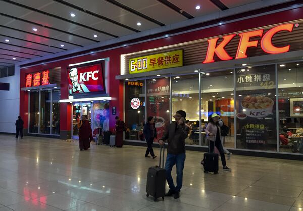 KFC (Kentucky Fried Chicken) была первой западной сетью ресторанов быстрого питания, которая вышла на рынок материкового Китая. В 1987 году совместное предприятие KFC, Beijing Tourist Bureau и Beijing Food Production открыло своё первое заведение в Пекине. В 1988 году Bank of China приобрёл 25 % совместного предприятия, а доля KFC сократилась до 51 %[12].