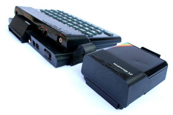 - ZX Microdrive — не особенно надёжное, но быстрое устройство хранения на картриджах с закольцованной плёнкой, выпущено в июле 1983 года[46].