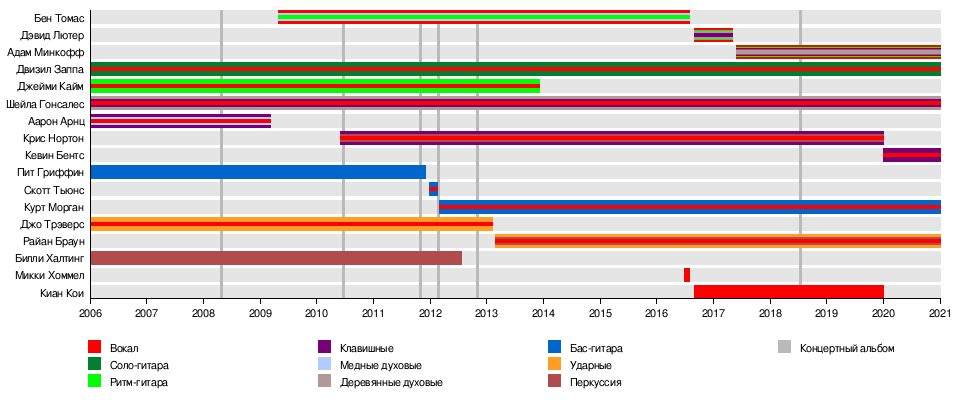 - Аарон Арнц — клавишные, труба, вокал (2006—2009)